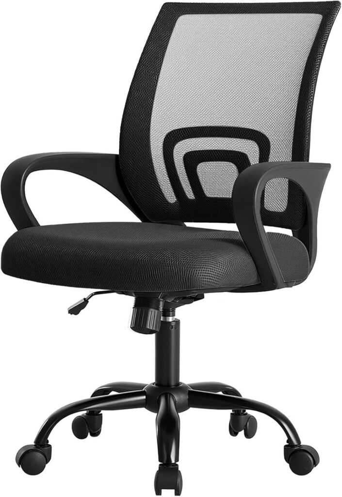 【Comfort Ergonomic Design】DUMOS features a scientifically contoured mid-back design and lumbar support that precisely fits the natural curve of your spine, relieve the soreness in your back and waist. The breathable mesh back promotes air circulation, keeping you cool and focused during long work hours, while the high-resilience foam seat cushion provides cloud-like comfort without sunken.