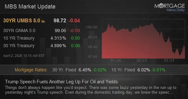 Things don’t always happen like you’d expect. There was some buzz yesterday in the run up to yesterday night’s Trump speech. Even during the domestic trading day, we knew the speech would offer some touting of accomplishments and a reiteration that objectives were “nearly complete.” Both of those things happened, but the speech also promised forceful escalation under certain circumstances. While that’s nothing new, it wasn’t what the market was hoping to hear last night. As a result, oil prices and bond yields spiked and stocks sold symmetrically. Bonds are juggling the dueling narratives of inflation and economic fallout–a fact that has helped them avoid tighter correlation with the oil price spike.